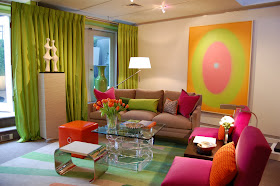 Eileen Kathryn Boyd and although it's very different, it's equally as beautiful! When I mentioned to Eileen that I don't tend to use a lot of bright colors but I love this room, she attributed it to the neutral background. The walls, sofa and main carpet all neutral and keep the room from becoming too much. It's also a great idea for the average homeowner because if you kept the bases neutral, then you could switch out the pillows with different colored options if you wanted a change.