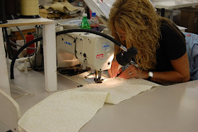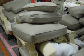 After the pillow and seat covers are sewn, the chairs and sofas move onto the upholstery room where the frames are covered with padding and fabric. "All fabrics are sewn with an interlocking stitch sewing machine which means that it a thread should break or be cut, the stitching would not unravel."