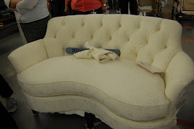 This little love seat looks like it's waiting for nailhead trim. I wish San Fransico interior designer Grant K. Gibson had told me before my trip that he had custom ordered a sofa from Hickory Chair. I could have looked for it while I was there and photographed it for him and his client! Some of the designers on the tour did actually see their orders being made which must have been exciting!