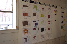 Hickory Chair were the factory tours which we quickly learned were as much about the people who make the furniture as it was the furniture being made. More than 10 years ago, Hickory Chair switched it's manufacturing philosophy to lean manufacturing which "calls for a series of adjacent workstations, balanced and synchronized to leave no inventory between stations." More importantly, the employees are encouraged to work as a team and to contribute ideas and make changes that can improve the process. As I mentioned yesterday, this method doesn't lessen quality and in fact, it actually improves it.