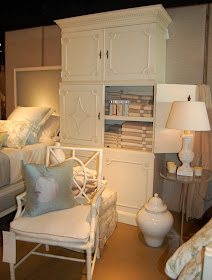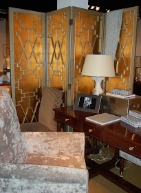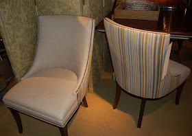 You can see another example of the special hand painting available from the artist at Hickory Chair. I also loved this striped fabric on these chairs #3235-34. We were asked for our "wishes" at the end of the last day and I forgot to ask for fabric names. As a visual person and interior designer, I can't remember numbers but I can remember a name!